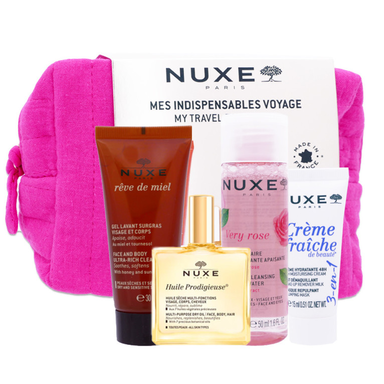 NUXE TROUSSE MES INDISPENSABLES VOYAGE : Découvrez cette trousse pratique en vente en ligne, sur le site de votre parapharmacie à prix discount, pour emporter vos essentiels de beauté partout avec vous.