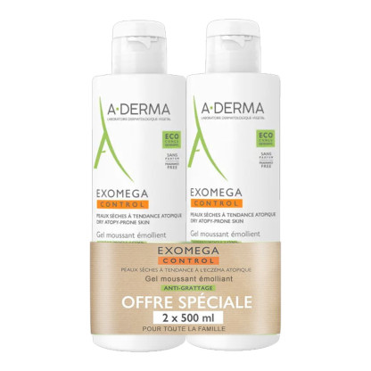 ADERMA EXOMEGA CONTROL GEL MOUSSANT ANTI GRATTAGE LOT DE 2X500ML