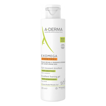 Le Gel moussant émollient EXOMEGA CONTROL à la base lavante douce, nettoie tout en douceur la peau, protège en formant et renforçant le film protecteur sur l’épiderme pour lutter contre les agressions extérieures et les récidives de démangeaisons génératrices, diminue les irritations, hydrate et apaise immédiatement et pour longtemps grâce à sa formule composée d'extrait de Plantules d’Avoine Rhealba. Sa texture moussante se rince facilement sans laisser de film gras sur la peau. Après la toilette, la peau délicatement parfumée retrouve confort, douceur et souplesse. Sans savon pH physiologique. Formule biodégradable. Testé sous contrôle dermatologique et pédiatrique