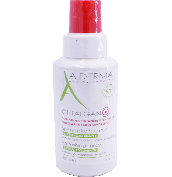 Le laboratoire A-DERMA propose des produits lavants, crèmes, laits corporels à base d’Avoine Rehalba actif végétal d’origine naturel et biologique cultivé dans le Grand Sud-Ouest de la France, pour répondre aux besoins spécifiques des peaux irritées, abîmées, fragiles et délicates (hydratation, protection, réparation, apaisement). Le Spray rafraîchissant Cutalgan, est un soin à 98% d’origine naturelle, composée de Liane du Pérou et d’extrait de Plantules d’Avoine Rhealba qui va apaiser les sensations d’inconforts et les irritations de la peau. Ce soin est préconisé pour les peaux sèches à tendances atopiques ou celles qui ont subi un acte dermatologique superficiel. Testé sous contrôle dermatologique, pédiatrique et gynécologique, ce soin rafraîchissant s’utilise chez l’Adulte et le Nourrisson et est efficace pendant 6h.