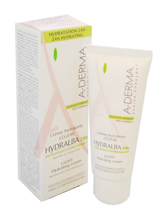 La gamme Hydralba d’A DERMA est composée de produits ultra-hydratants et apaisants à base d’avoine rhealba, glycérine végétale et vitamine E pour redonner aux peaux fragiles, déshydratées et délicates confort et douceur. La Crème hydratante Hydralba légère Nouvelle formule, à la texture fraiche et non grasse, à base du complexe Rhealbose® qui vient de la Plantule d’Avoine Rhealba®, et composée de vitamine E, protège les cellules de l’épiderme des agressions extérieures et hydrate intensément la peau pour lui redonner tout son confort. Dès l’application et tout au long de la journée, la peau est hydratée, apaisée, très douce et délicatement parfumée.
