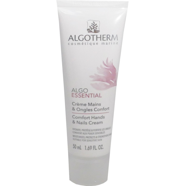 La gamme ALGOESSENTIAL est composée de produits de beauté pour toutes les peaux pour leur redonner du confort au quotidien. La Crème Mains & ongles Confort composée d’extraits d’algues (chorelle vulgaris) et d’iris protège la peau des agressions quotidiennes et du vieillissement prématuré et hydrate tout en apaisant de tout inconfort et tiraillements, et agit sur les cuticules et les ongles en les assouplissant et les fortifiant. Sa texture soyeuse laissera sur les mains une grande douceur. Après le soin, la peau est souple et très douce, les ongles sont résistants. Hypoallergénique Testé sous contrôle dermatologique.