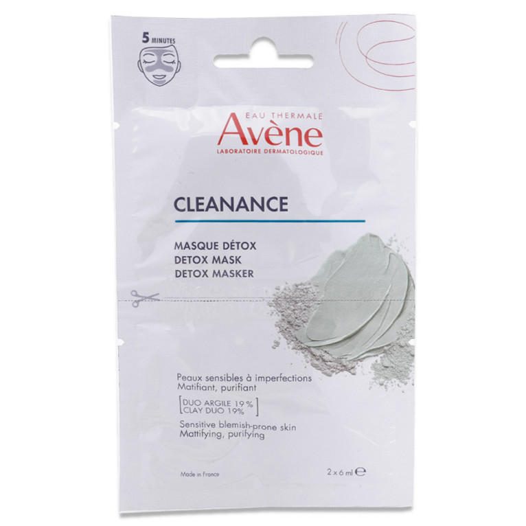AVENE CLEANANCE MASQUE DÉTOX 2X6ML est en vente en ligne sur le site de votre parapharmacie à prix discount, conçu pour purifier et rafraîchir la peau mixte à grasse.