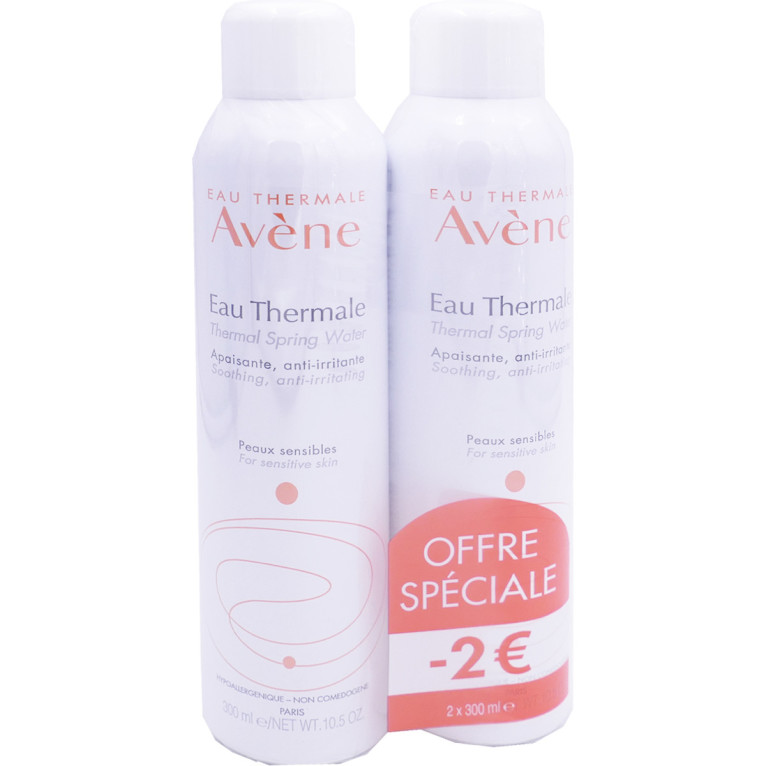 Le Spray d’Eau Thermale Avène est indiqué dans le soin quotidien des peaux sensibles, des personnes hypersensibles ou allergiques. Il permet d’adoucir et de calmer les irritations de la peau. Grâce aux effets bénéfiques de l’eau thermale d’Avène connue pour ses vertus apaisantes et anti-irritantes. A prix discount par lot de deux dans votre parapharmacie en ligne.