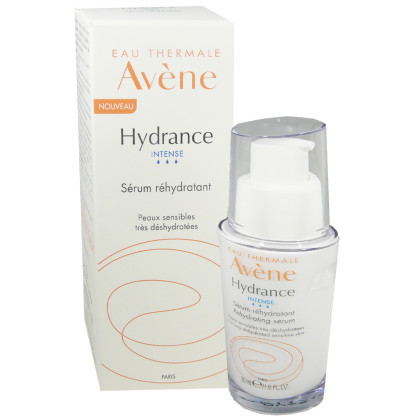 La gamme Hydrance d’AVENE est composée de soins spécifiques pour hydrater intensément et redonner du confort aux peaux sèches et déshydratées à base de 3 actifs essentiels pour une hydratation optimale : les liposomes, la matrice hydrophile 3D, et l’eau thermale d’Avène. Le Sérum réhydratant Hydrance Intense à base du complexe Cohederm (brevet AVENE) et d’Eau thermale d’Avène, hydrate intensément et en profondeur l’épiderme pour une hydratation en continu des cellules en recréant les réservoirs naturels d’eau de l’épiderme, protège des agressions quotidiennes et de la sècheresse, et redonne souplesse et confort. Sa texture aqua-film déposera sur la peau un voile d’eau imperceptible pour une sensation douceur. Dès la 1ère application et pour longtemps, la peau ne tiraille plus, elle est douce et lisse. Non comédogène