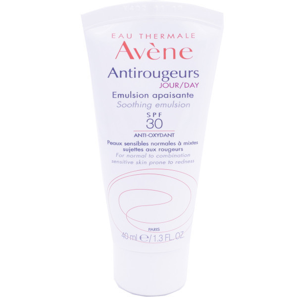 Emulsion apaisante SPF 30 Antirougeurs discount d'AVENE, le soin pour apaiser la peau et estomper les rougeurs des peaux sensibles, normale à mixte du visage, dans votre parapharmacie en ligne à prix discount.
