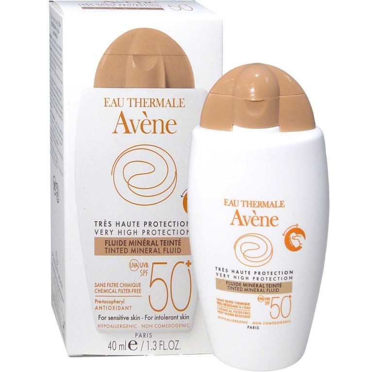 Fluide minéral teinté SPF50+ d'AVENE discount, la protection solaire teintée dans votre parapharmacie à prix discount, très efficace des peaux sensibles, allergiques aux filtres chimiques, intolérantes au soleil qui révèle la beauté du visage.