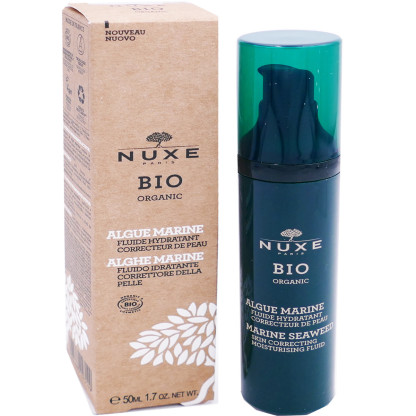 Nuxe, contraction de Nature et Luxe, développe depuis 25 ans des soins cosmétiques raffinés, élaborés avec des actifs végétaux précieux, sans huile minérale ni matière animale hormis les produits de la ruche, pour offrir des produits associant avec le plus bel équilibre : nature, performance et sensualité. La gamme NUXE BIO propose des soins certifiés biologiques et concentrés pour prendre soin de toutes les peaux même les plus sensibles. Les actifs stars issus de technologies vertes permettent aux soins une utilisation en toute confiance sans agresser la peau ni la nature. Le Fluide Hydratant Correcteur de peau est formulé avec 99% d’ingrédients d’origine naturelle dont un extrait d’Algue Marine 100% français issu de la biotechnologie verte, actif star du soin, et de l’acide hyaluronique d’origine naturelle. Il est spécialement conçu pour corriger les imperfections, rougeurs et grain irrégulier de la peau en resserrant les pores et en estompant les marques, hydrater et apaiser. Sa texture légère enveloppe la peau d’un parfum frais aux notes d’embruns. Dès l’application la peau est fraîche avec un fini mat. Jour après jour le grain de peau est affiné, toutes les imperfections estompées pour retrouver un visage net.