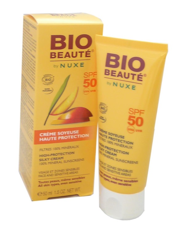 La Crème soyeuse SPF50 Bio Beauté de NUXE dans votre parapharmacie en ligne à prix discount, la protection solaire très efficace pour le visage et les zones sensibles de tous les types de peaux même les plus sensibles.