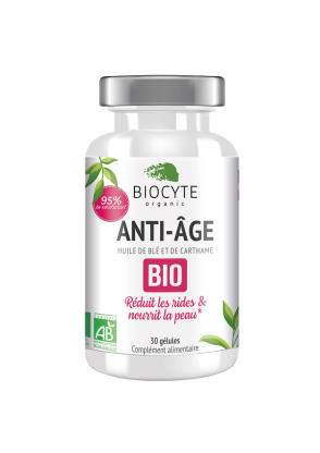 ANTI-AGE BIO discount de BIOCYTE, le complément alimentaire sous forme de poudre en gélules, composé d'extraits d’huiles végétales Bio, dans votre parapharmacie en ligne à prix discount.