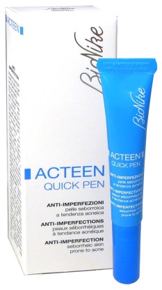 La gamme Acteen de BioNike propose des soins adaptés aux peaux séborrhéiques à tendance acnéique. La lotion anti-imperfections Quick Pen Acteen, en format stylo nomade et pratique qui permet une application ultra-ciblée, est un soin asséchant et astringent conçu pour traiter rapidement les imperfections et favoriser leur disparition.