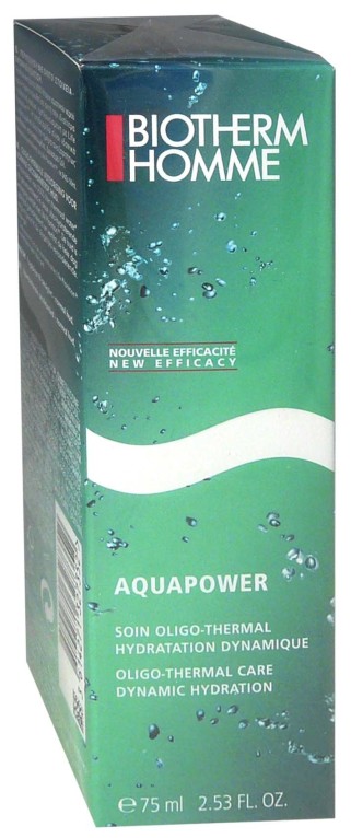 La gamme Homme Aquapower des laboratoires BIOTHERM est composée de soins hydratants pour le bien-être de la peau. Aquapower Soin Oligo-thermal Hydratation Dynamique est un soin frais très concentré en oligo-éléments (équivalent de 5000 litres d’eau thermale) et riche en plancton thermal de vie pur, et en vitamines (B5, C et E), qui va apporter des acides aminés pour foritifier l’épiderme, et hydrater intensément en préservant l’eau en profondeur dans l’épiderme pour une hydratation de 48 heures. Sa texture gel légère non grasse et non collante vite absorbé rafraîchira intensément la peau et l’adoucira pour un visage frais dès l’application.