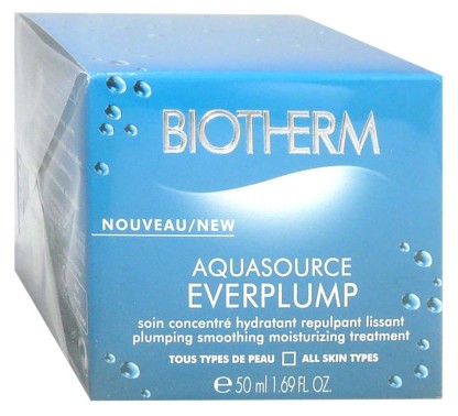 La gamme Aquasource des laboratoires BIOTHERM est composée de soins ultra-hydratants pour les peaux desséchées pour retrouver confort et souplesse par sa formule composée essentiellement d’Eau Cellulaire de Plancton de Vie hautement hydratante. Everplump Aquasource est un gel qui hydrate intensément et en profondeur pour lisser et estomper les ridules, régénère l’épiderme, redensifie et renforce la peau, rafraîchit et apaise la peau en laissant un effet rebondit, grâce à sa richesse en Blue Hyaluron qui est un sucre marin aux vertus repulpantes issu de la biologie marine, au Plancton de Vie™ ultra-concentré (qui vient des sources thermales des Pyrénées françaises) riche de 35 nutriments, à la glycérine et à l’adénosine. Sa texture gel qui ne colle pas à l’application laisse la peau fraîche et douce. Dès l’application le teint retrouve sa fraicheur, la peau est lisse et intensément hydratée pendant 72 heures. En 1 semaine, la peau est repulpée et retrouve son éclat, les rides estompées. Sans paraben