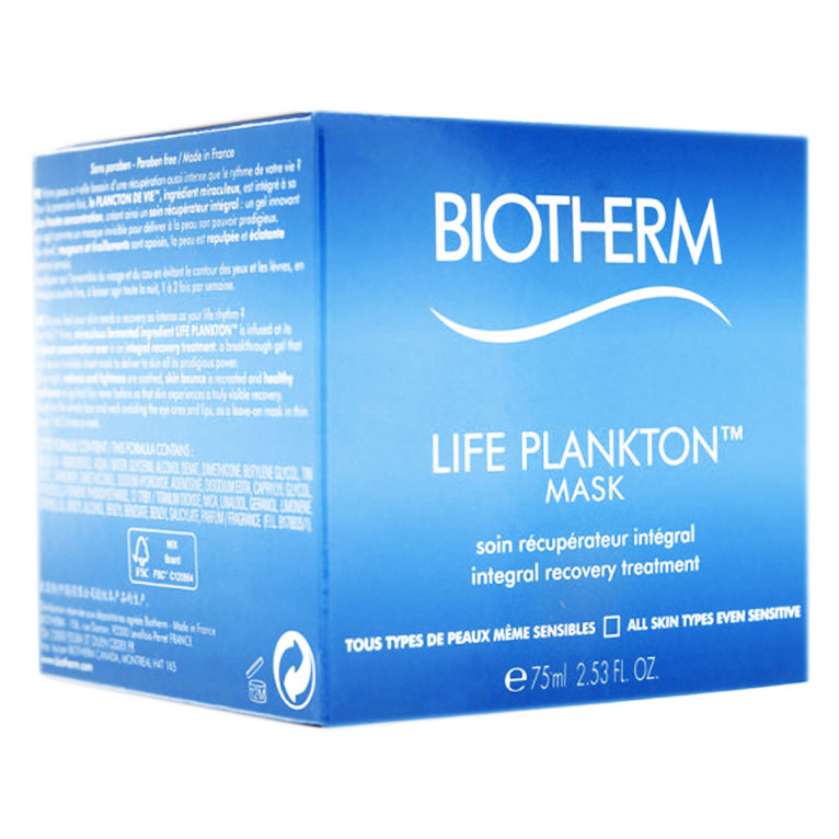 La gamme Life Plankton des laboratoires BIOTHERM est composée de soins réparateurs, protecteurs et ultra-hydratants pour redonner force et beauté à la peau par sa formule composée essentiellement de Plancton de Vie hautement hydratante et régénérante. LIFE PLANKTON Mask est un soin qui agit pendant le sommeil très concentré en Plancton de Vie qui est un micro-organisme marin (qui vient des sources thermales des Pyrénées françaises), riche de 35 nutriments. Ses propriétés régénérantes et ultra-hydratantes, vont réparer la peau, la protéger au quotidien des agressions extérieures et l’hydrater intensément en profondeur pour lutter contre la déshydratation. Sa texture hydrogel rafraîchit instantanément la peau et l’enveloppe de douceur comme une seconde peau, pour une peau lumineuse, repulpée et lisse, apaisé de tous inconforts le lendemain matin. Le teint uniforme retrouve son éclat et sa fraîcheur au réveil. Sans paraben. Hypoallergénique