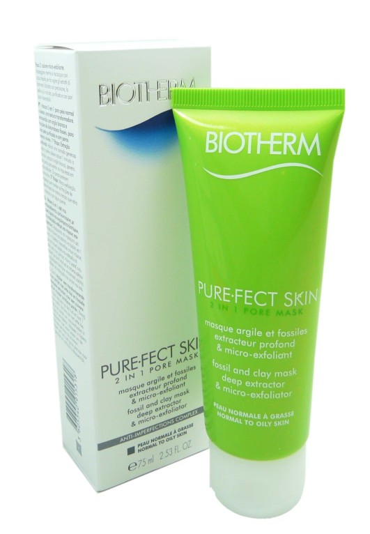 La gamme Purefect des laboratoires BIOTHERM est composée de soins réservés aux peaux mixtes à grasses et/ou à problèmes pour retrouver netteté et clarté par sa formule composée essentiellement de Laminoaria digitata qui est une macro-algue brune. Le masque purifie la peau, élimine les impuretés et imperfections en profondeur tout en prenant soin de la peau sans la dessécher, resserre les pores de l'épiderme pour éliminer l'excès de sébum et le réguler, et affine le grain de peau grâce à sa richesse en argile blanche et en extraits de diatomées fossiles. Sa texture transformable pour un soin 2 en 1 (extraction et exfoliation) laisse la peau pure et nette.