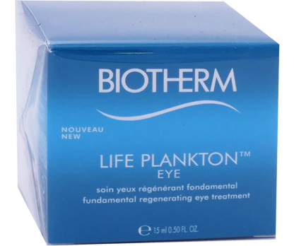La gamme Life Plankton des laboratoires BIOTHERM est composée de soins réparateurs, protecteurs et ultra-hydratants pour redonner force et beauté à la peau par sa formule composée essentiellement de Plancton de Vie hautement hydratante et régénérante. LIFE PLANKTON Eye est une crème très concentrée en Plancton de Vie (5%) qui est un micro-organisme marin (qui vient des sources thermales des Pyrénées françaises), riche de 35 nutriments. Ses propriétés régénérantes et anti-âge vont réparer la peau, la protéger au quotidien des agressions extérieures, lisser les rides et ridules du contour des yeux, décongestionner en estompant les poches autour des yeux, estomper les imperfections et hydrater intensément en profondeur la peau pour lutter contre la déshydratation et les inconforts. Sa texture fraiche légère comme un gel et onctueuse comme un crème pénètre rapidement à l’application pour une peau douce et lisse, apaisée de tout inconforts. En 8 jours le regard retrouve son éclat, le contour des yeux est raffermi et repulpé.