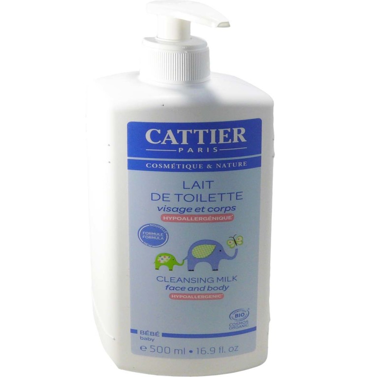 Lait de toilette hypoallergénique de CATTIER discount, le soin douceur dans votre parapharmacie en ligne à prix discount, qui nettoie au quotidien tout en douceur le visage et le corps des bébés.