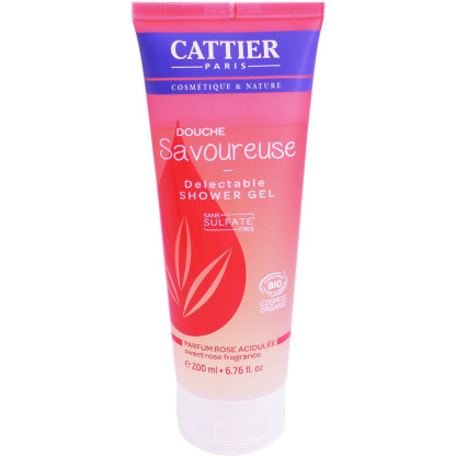 Gel douche Savoureuse de CATTIER est un soin d’hygiène quotidien très doux aux propriétés réparatrices, protectrices, hydratantes, et tonifiantes, riche en aloe vera bio. Il va nettoyer tout en douceur la peau, en respectant son équilibre, régénérer, hydrater, protéger la peau en renforçant le film protecteur de l’épiderme, adoucir, et apaiser de tout inconfort. Après la toilette, la peau est très douce et délicatement parfumée aux senteurs de rose acidulée pour un moment de douceur et gourmandise au milieu d’un jardin au cœur sucré ! Sans savon sans sulfates