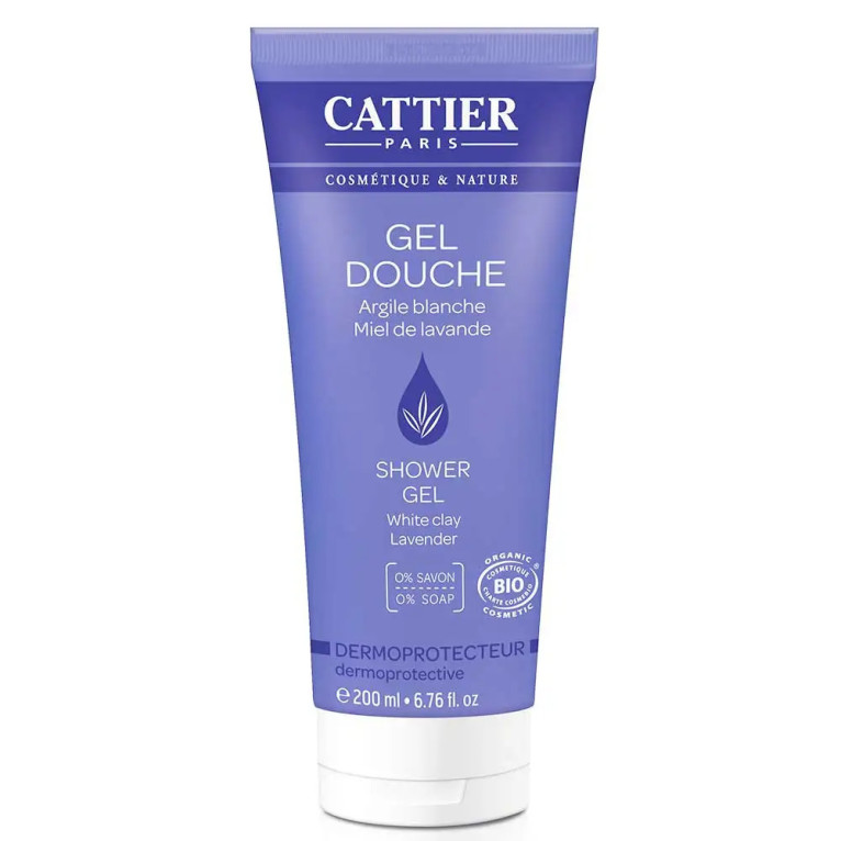 Gel douche Dermoprotecteur de CATTIER est un soin d’hygiène quotidien très doux au pH physiologique, aux propriétés réparatrices, reminéralisantes, protectrices, hydratantes, et apaisantes. Composé d’aloe vera bio, la peau sera protégée, hydratée et apaisée. L’argile blanche est reminéralisante et apaisante pour adoucir la peau. Le Miel Bio hydrate la peau pour retrouver confort et douceur, et la raffermit. L’huile essentielle de lavande bio complète la formule pour régénérer, apaiser et adoucir Après la toilette, la peau est très douce et délicatement parfumée aux senteurs de lavande pour un moment de confort ! Sans savon Certifié bio - Végan