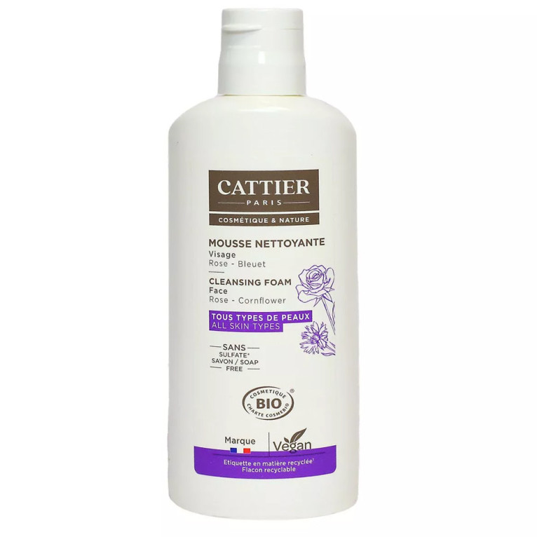 Le laboratoire CATTIER développe des produits pour le soin et le bien-être de toute la famille à base d’ingrédients naturels bio et d’argiles sans silicone, sans paraben, sans produits chimiques. La mousse nettoyante de CATTIER riche en protéines de blé et aux florales de rose et de bleuet bio, élimine toutes les impuretés du visage et nettoie tout en douceur et en profondeur, en respectant l’épiderme, nourrit, hydrate intensément, purifie, et apaise de tout inconfort et tiraillements. Sa texture ultralégère se transforme en mousse fine et aérienne au contact de la peau pour le plus grand plaisir. La peau est fraîche, nette, très douce et très confortable et délicatement parfumée.