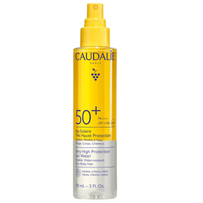 CAUDALIE EAU SOLAIRE SPF 50+ pour le visage et le corps est en vente en ligne sur le site de votre parapharmacie à prix discount, offrant une protection solaire haute performance pour tous types de peau.