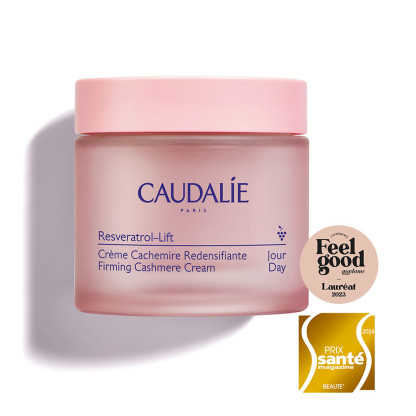 La gamme Resveratrol Lift de CAUDALIE est composée de produits anti-âge et antifatigue composés de Resvératrol de Vigne et d’un complexe d’acides hyaluroniques pour lisser la peau et retrouver beauté et jeunesse. La Crème cachemire redensifiante Resvératrol Lift de CAUDALIE est un soin très concentré à base de Resvératrol de Vigne, de Collagène Vegan et d'acide hyaluronique, qui va participer à l’augmentation de la production d’acide hyaluronique dans les cellules de l’épiderme pour mieux lutter contre l’apparition des rides et ridules et lisser celles déjà présentes, redonner du volume au visage en redensifiant la peau, nourrir et hydrater intensément. Sa texture légère ultra-sensorielle laisse dès l’application la peau douce comme du cachemire, souple et éclatante de beauté. Jour après jour, les rides et ridules sont lissées pour retrouver une peau rajeunit, le visage est rebondi. Testé sous contrôle dermatologique. Sans paraben, sans phénoxyéthanol, sans phtalates, sans sodium laureth sulfate, sans huile minérale, sans matière d'origine animale.