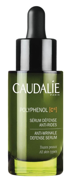La gamme Polyphénols C15 de CAUDALIE est composée de soins protecteurs pour préserver la jeunesse de la peau par sa richesse en pépins de raisin.Le sérum protège la peau des agressions extérieures et du vieillissement prématuré en renforçant le film protecteur, repulpe, effacent les rides et ridules, et hydrate grâce à sa richesse en polyphénols, en vitamine C, en acide hyaluronique ainsi qu’à la squalane d’olive. Le teint retrouve sa fraîcheur et sa lumière, la peau est claire et sans signes de l’âge.