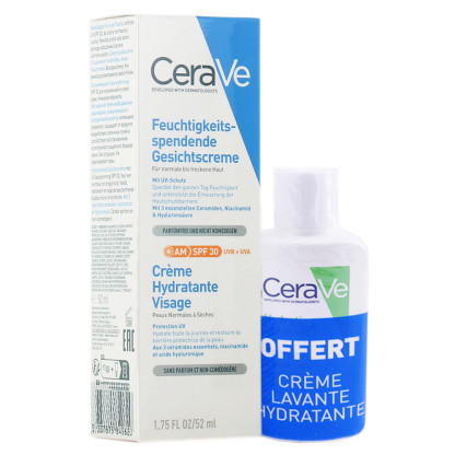 CERAVE CREME HYDRATANTE VISAGE SPF30 52ML + CREME LAVANTE HYDRATANTE 20ML en vente en ligne, sur le site de votre parapharmacie à prix discount.