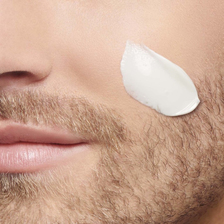 Appliquer le fluide après rasage en lissages légers sur tout le visage. Insister sur les zones fragilisées par le rasage.
