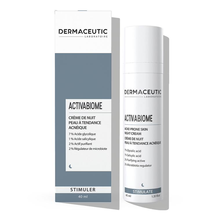Activabiome crème de nuit de DERMACEUTIC discount, le soin qui exfolie et libère les pores de la peau grâce à l’action kératolytique de l’acide salicylique et glycolique, dans votre parapharmacie en ligne à prix discount. Peaux à tendance acnéique.