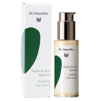Fluide de Jour Apaisant discount de Dr HAUSCHKA, la cosmétique bio et naturelle dans votre parapharmacie en ligne à prix discount, pour hydrater, protéger et apaiser les peaux sensibles réactives et sujettes aux rougeurs. Visage. Edition 2023