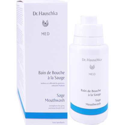 Bain de bouche à la Sauge discount de Dr HAUSCHKA MED, la cosmétique bio et naturelle dans votre parapharmacie en ligne à prix discount, pour compléter le brossage des dents quotidien et rafraîchir l’haleine.