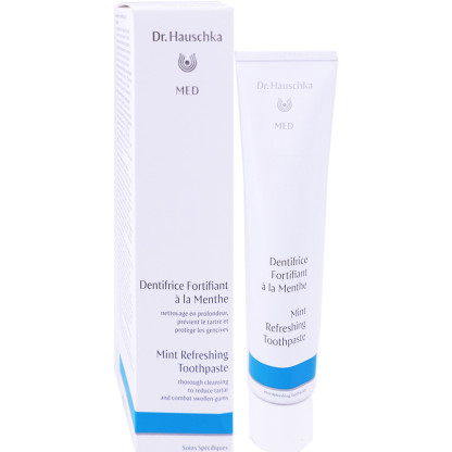 Dentifrice Fortifiant à la Menthe discount de Dr HAUSCHKA MED, la cosmétique bio et naturelle dans votre parapharmacie en ligne à prix discount, pour une hygiène dentaire douce destiné à renforcer les dents et les gencives au quotidien.