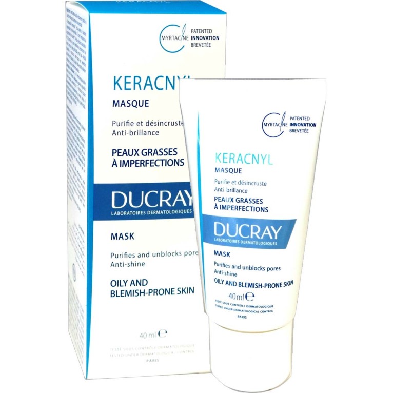 La gamme KERACNYL du laboratoire Ducray est composée de produits spécialement adaptés aux peaux acnéiques et/ou à imperfections du visage et du corps. Keracnyl Masque est un soin à base de l’innovation Myrtacyne brevetée, d’acide glycolique, de grains exfoliants, d’argile, et de bisabolol, qui va désincruster les pores de l’épiderme et lisser le grain de peau, lutter contre la multiplication des bactéries en ciblant les bactéries qui sont la cause des imperfections, éliminer l’excès de sébum et les zones de brillance, hydrater, et apaiser les irritations de la peau. Dès la 1ère utilisation, la peau délicatement parfumée, est nette, lisse et purifiée. Le teint est éclatant. Testé sous contrôle dermatologique Sans paraben, hypoallergénique, non comédogène