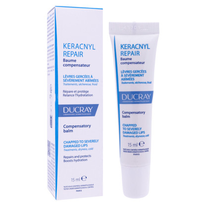 Keracnyl Repair Lèvres de DUCRAY dans votre parapharmacie en ligne à prix discount, le baume pour réparer et apaiser les lèvres gercées, très abîmées, ou sèches par les traitements médicamenteux anti-acnéiques oraux.