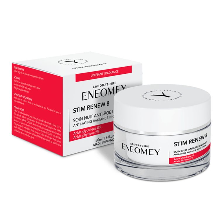 Stim Renew 8 d’ENEOMEY discount, le pouvoir anti-âge de la cosmétologie dynamique dans votre parapharmacie en ligne à prix pas cher, dans un soin de nuit anti-âge pour unifier la peau et redonner de l’éclat lors de teint terne ou de taches pigmentaires. Peaux sensibles