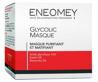 Issus de la cosmétologie dynamique, une alternative non invasive à la chirurgie esthétique, les produits mene&moy ENEOMEY sont composés de principes actifs fortement dosés et redoutablement efficaces sur les désordres cutanés liés au vieillissement cellulaires : la vitamine C stabilisée et l’acide glycolique. Glycolic Masque de mene&moy ENEOMEY est un soin concentré en acide glycolique, bentonine et kaolin, spécialement conçu pour purifier la peau en profondeur en éliminant les cellules mortes et l’excès de sébum. Le grain de peau est affiné, le teint unifié, le visage s’éclaire.