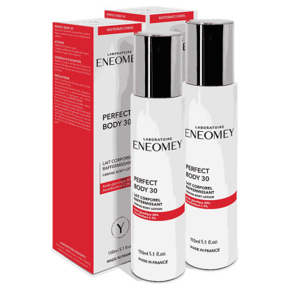 Le Pack Perfect Body ENEOMEY discount, le pouvoir anti-âge de la cosmétologie dynamique dans votre parapharmacie à prix discount, dans 2 soins conçus pour hydrater et tonifier les peaux sensibles et déshydratées, raffermir la peau et lisser les vergetures : Lait Perfect Body 15 et Lait Perfect Body 30 Corps (bras, jambes, fesses et ventre).