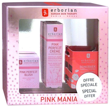 Le coffret PINK MANIA d’ERBORIAN est composé de 3 produits pour prendre soin de sa peau et la sublimer tout au long de la journée : Pink Perfect Blush (4g) ; Pink Perfect Crème (15ml) ; Dongbaek Camellia Essence (3ml) Offerte.