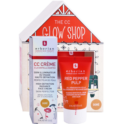 Le coffret « THE CC GLOW SHOP » d’ERBORIAN à prix discount dans votre parapharmacie en ligne, est un lot de 2 soins beauté pour une peau zéro défaut et éclatante tout au long de la journée : CC Crème Doré (15ml) et Red Pepper Pulp Gel-crème éclat (20ml).