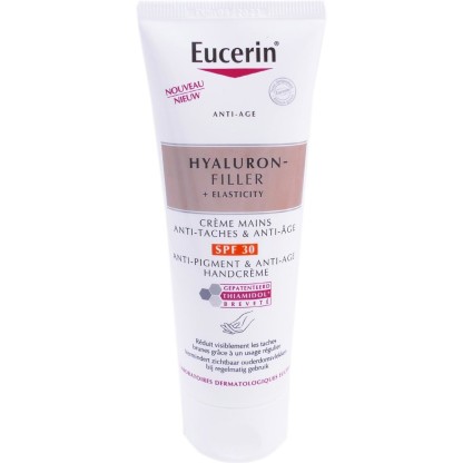 HYALURON-FILLER+ ELASTICITY Crème Mains discount EUCERIN un soin anti-âge et anti-taches dans votre parapharmacie en ligne à prix discount, pour redonner jeunesse et éclat aux peaux matures des mains en seulement 2 semaines !