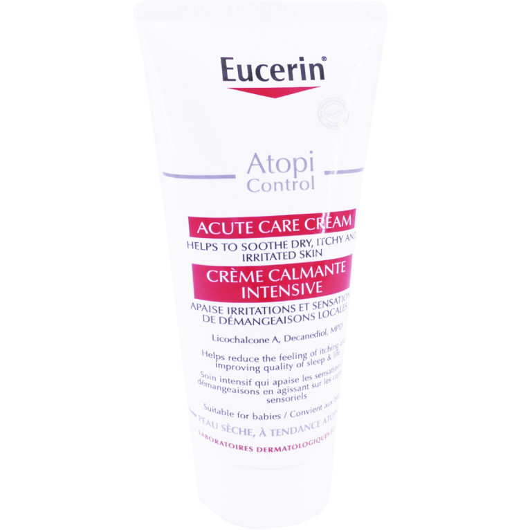 Crème Calmante Intensive AtopiControl d’EUCERIN dans votre parapharmacie en ligne à prix discount, le soin qui soulage les inconforts des peaux très sèches à tendance atopique (démangeaisons, tiraillements, rougeurs,…) de toute la famille (bébés à adultes) avec des poussées intenses et sévères. A partir de 3 mois. Corps