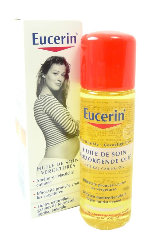 Les produits EUCERIN sont des soins « cosméto-médicaux » qui allient des produits réparateurs et de soins pour tous les types de peaux. L’huile de soin composée d'huiles pures naturelles très concentrées en acides gras essentiels (graines de tournesol, jojoba et amande), et de vitamine E, protège la peau de l’apparition des vergetures, relance la circulation sanguine, estompe l’apparence des vergetures et redonne à la peau de l’élasticité. Sa texture qui pénètre dès l’application, laisse la peau délicatement parfumée, soyeuse, souple et très douce.