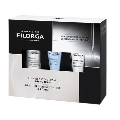 FILORGA COFFRET OPTIM EYES + HYDRA HYAL CREME + SCRUB & DETOX EXFOLIANT MOUSSE