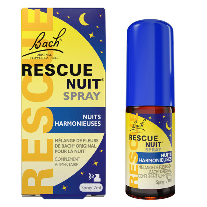 Rescue Nuit Spray FLEURS DE BACH à prix discount, le spray au mélange de fleurs de Bach Original pour un réveil serein, dans votre parapharmacie en ligne discount. Format poche Spray 7ml.