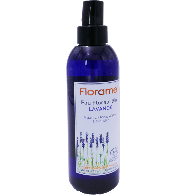 La gamme des Eaux Florales de FLORAME est constituée d’eaux florales bio, obtenues par distillation à la vapeur d’eau de plantes aromatiques issues de l’agriculture biologique, pour offrir à la peau un soin très concentré en actifs naturels. Ces eaux florales offrent à l’épiderme un rafraîchissant bain d’hydratation et sont utilisées comme tonique au réveil, en complément du démaquillant le soir ou en eau de soin tout au long de la journée. L’Eau florale de Lavande Bio, à base de fleurs de Lavandula angustifolia, aux propriétés purifiantes, équilibrantes et matifiantes, est idéale pour le soin des peaux mixtes et grasses. Elle peut également être utilisée pour soulager les peaux irritées, notamment après le rasage, ou pour assainir et fortifier le cuir chevelu.