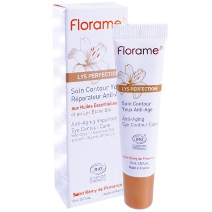 La gamme Lys Perfection de FLORAME est composée de soins anti-âge pour les peaux matures du visage composés essentiellement d’huiles essentielles biologiques et d’extraits de lys blanc bio pour régénérer et protéger la peau contre les signes du temps. Le Soin Contour des yeux Réparateur Anti-âge lutte contre l’apparition des signes de l’âge (rides et ridules) en protégeant et réparant la peau grâce aux huiles végétales bio (Rosier Muscat, Carthame et Bourrache) qui sont riches en acides gras insaturés. L’extrait de bourgeons de sorbier aux vertus anti-fatigue estompera les poches et les cernes pour un regard qui retrouve son éclat ! Le soin va raffermir la peau et la lisser pour estomper les rides et ridules sur le contour des yeux dès son application. Sa texture gel-crème, fera de ce soin un vrai régal pour la peau. Dès la première utilisation, le regard retrouve toute sa lumière et sa jeunesse.