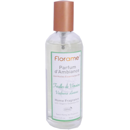 La gamme Parfums d’intérieur de FLORAME est composée de parfums d’ambiances, bougies, diffuseurs…, pour laisser des fragrances fruitées ou florales dans une pièce selon son humeur et ses envies ! Le Parfum d’ambiance à la Verveine se compose d’huiles essentielles 100% naturelles et biologiques aux belles senteurs citronnées et pétillantes. En se diffusant naturellement, ces senteurs transporteront au milieu des champs de verveine en Provence !