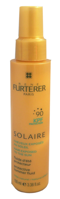 La gamme Solaire de RENE FURTERER est composée de soins capillaires à base d’huiles essentielles d’origine naturelle et d’extraits de plantes, protecteurs et réparateur des cheveux sensibles et/ou agressés par le soleil pour leur redonner éclat et douceur. Le fluide d’été protecteur de RENE FURTERER à base d’extrait de sésame qui est riche en acides gras, vitamine E et sels minéraux et de filtres UV, protège des rayons du soleil et de la sècheresse, et nourrit intensément les cheveux. Dès l’application, le fluide à la texture légère et non grasse, redonne de la douceur aux cheveux et sublime la chevelure. Résiste à l’eau de mer et de piscine.