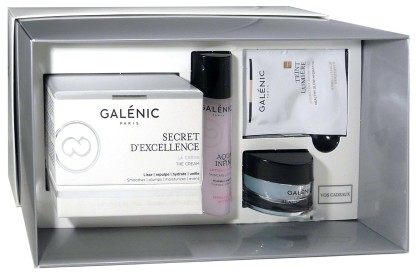 Le coffret SECRET D’EXCELLENCE de GALENIC, 5 soins dans un coffret à offrir ou à se faire offrir pour une peau toujours belle et éclatante avec leurs vertus hydratantes et anti-âge : Secret d’excellence Crème anti-âge (50ml) ; Beauté de nuit gelée chrono-active (15ml) ; Aqua Infini Lotion de soin hydratant (40ml) ; Teint lumière hydratant clair et mat (2x3ml)